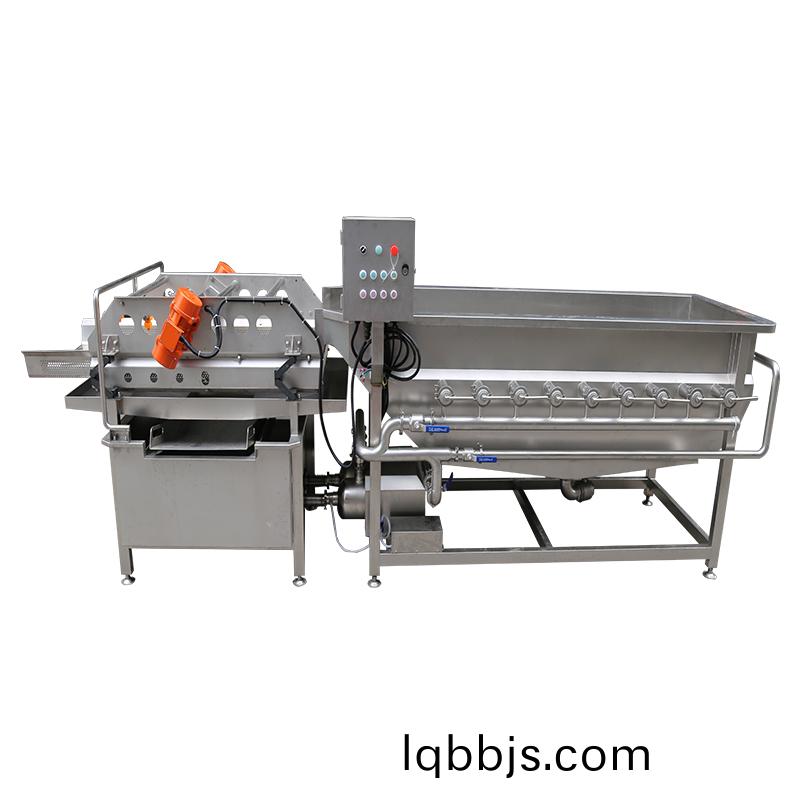 1.旋流式清洗加气泡清洗设计,缸底布置高压注气管,有效分离成团的蔬菜。 排气管更配备