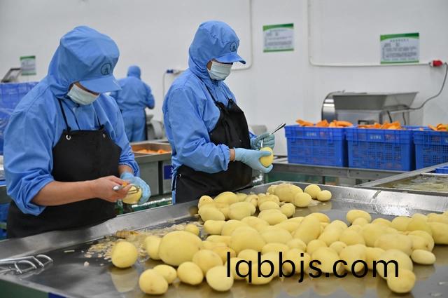 换工作服、戴头套、穿鞋套、洗手、全身消毒……按照生产要求,记者“全副武装”后,被允许进入位于二楼的蔬菜生产车间。在这里,按照功能不同,分成了前处理修整、清洗脱水、包装等车间,4条自动化生产线贯穿其中。一旁的每个工位上都围满工人,他们正配合机器把辣椒洗干净,把包菜、土豆、胡萝卜等切成丝,完成称重、打包、贴标签等流程。每完成一道工序,工人就会仔细清理操作台,确保车间时刻保持干净整洁。“清洗、切配后的净菜,可以直接下锅烹饪,健康安全、方便快捷。”徐继超说。