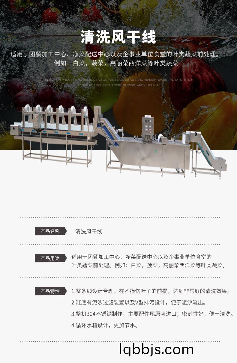 用途:适用于团餐加工中心、净菜配送中心以及企事业单位食堂的叶类蔬菜前处理。例如:白菜,菠菜,高丽菜,西洋菜等叶类蔬菜。特性:1.整条线设计合理,在不损伤叶子的前提,达到非常好的清洗效果。2.缸底有泥沙过滤装置以及V型排污设计,便于泥沙流出。3.整机304不锈钢制作,主要配件尾原装进口;密封性好,便于清洗。4.循环水箱设计,更加节水。