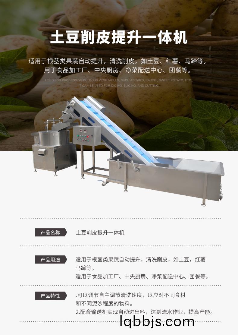 用途:适用于根茎类果蔬自动提升,清洗削皮,如土豆,红薯马蹄等。