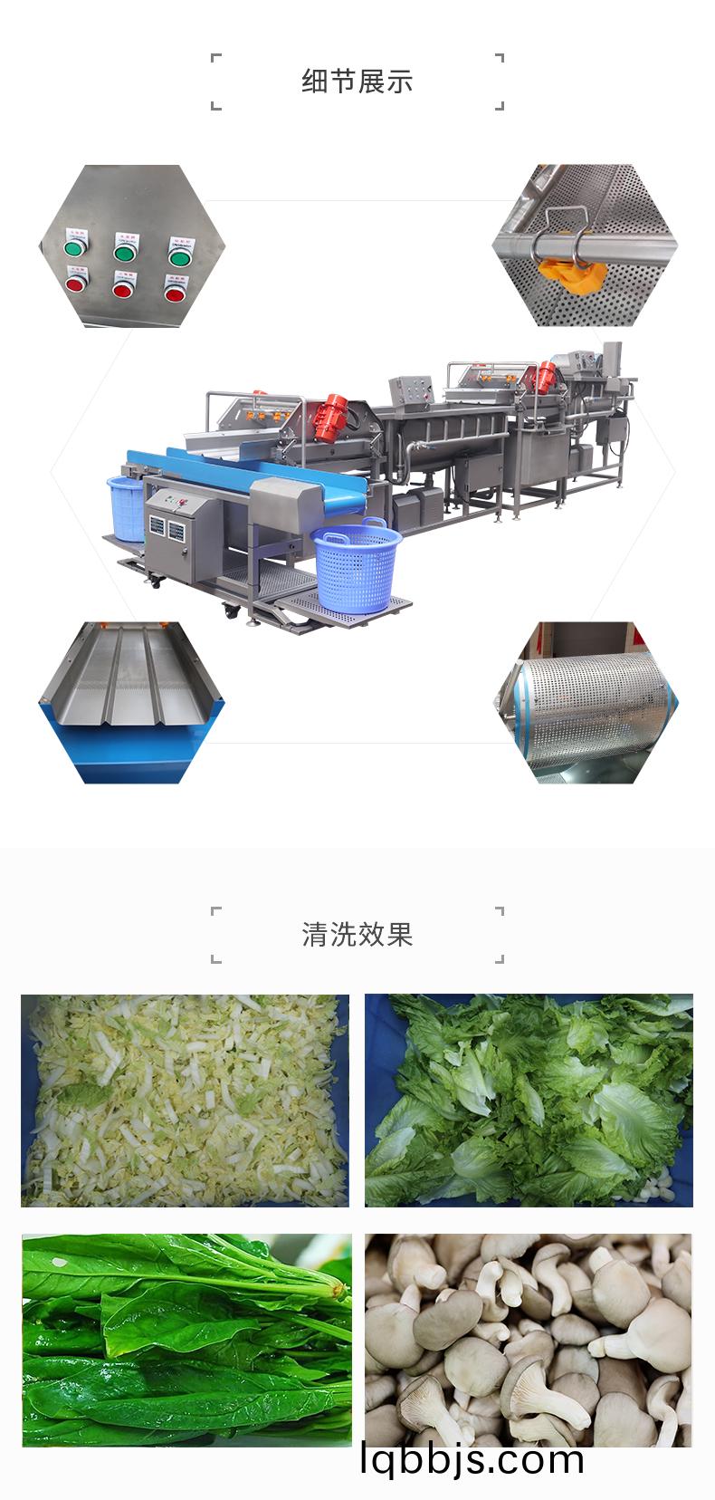产品用途:适用于团餐加工中心、净菜配送中心以及企事业单位食堂的叶类蔬菜前处理。例如:白菜,菠菜,高丽菜西洋菜等叶类蔬菜。特性:1整条线设计合理,在不损伤叶子的前提,达到非常好的清洗效果。2.缸底有泥沙过滤装置以及V型排污设计,便于泥沙流出。3.整机304不锈钢制作,主要配件尾原装进口;密封性好,便于清洗。4.循环水箱设计,更加节水。