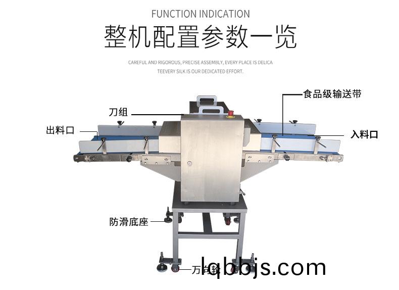 3.能快速拆装进、出料输送带及圆刀片组,方便清洗,符合食品卫生要求。