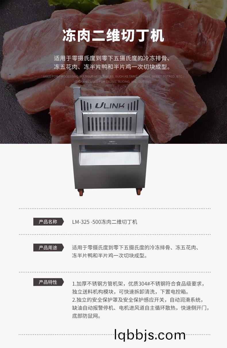 适用于零摄氏度到零下五摄氏度的冷冻排骨、冻五花肉、冻半片鸭和半片鸡一次切块成型。