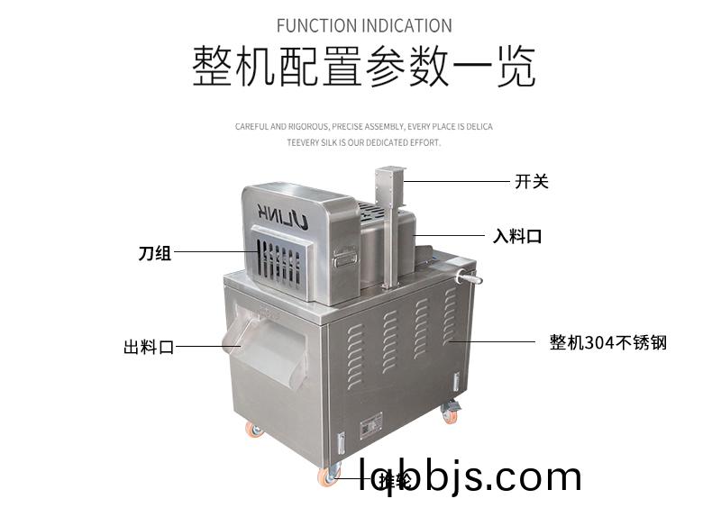 1.加厚不锈钢方管机架,优质304#不锈钢符合食品级要求,独立送料机构模块,可快速拆卸清洗,下置电控箱。