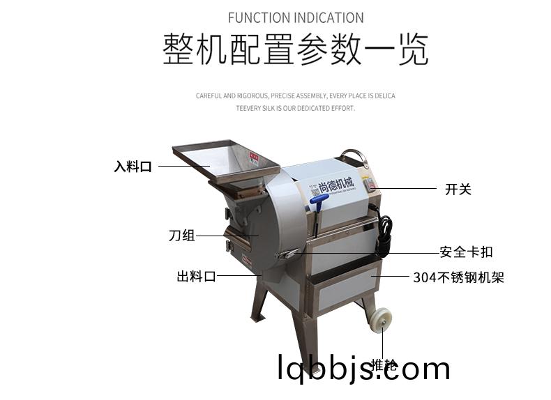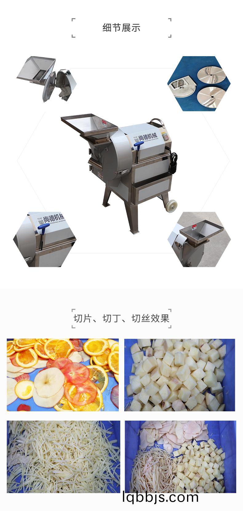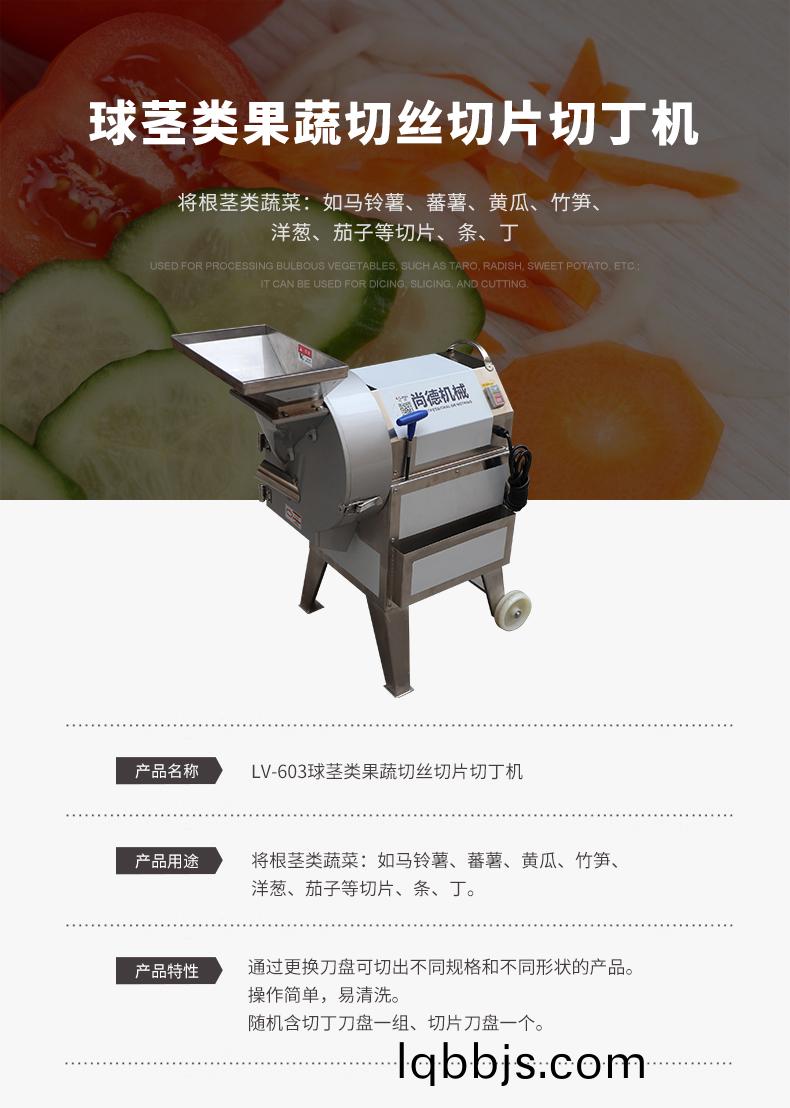 产品简介:将根茎类蔬菜:如马铃薯、蕃薯、黄瓜、竹笋、洋葱、茄子等切片、条、丁。适合企业食堂、监狱、学校、部队、中央厨房、膳食托管等团餐企业以及超市、净菜配送、农贸市场等超市农产企业使用。特性:通过更换刀盘可切出不同规格和不同形状的产品,操作简单,易清洗。随机含切丁刀盘一组、切片刀盘一个。