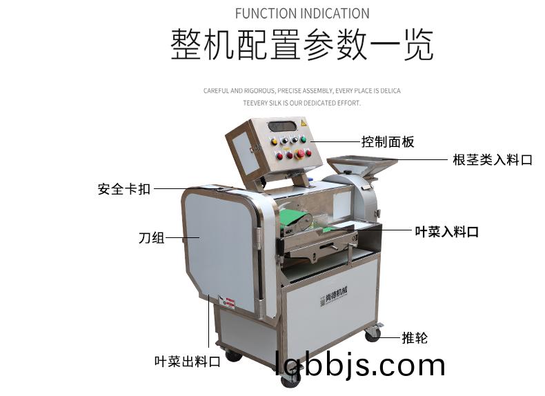 叶菜类(可调):1~60mm;根茎类(不可调,需换刀盘) 切丝:2-10mm;切片:2-20mm;切丁:8-20mm; |
