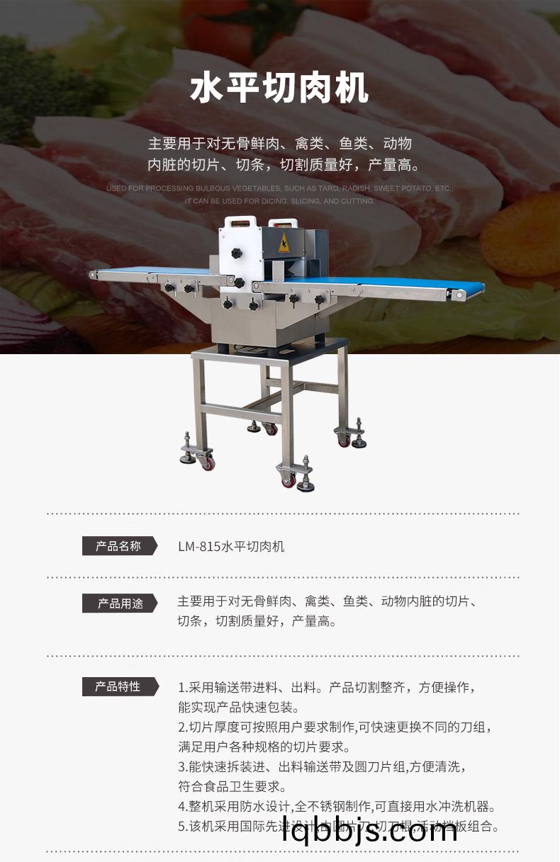 主要用于对无骨鲜肉、禽类、鱼类、动物内脏的切片、切条,切割质量好,产量高。