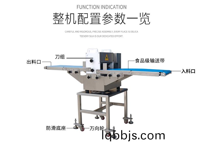 3.能快速拆装进、出料输送带及圆刀片组,方便清洗,符合食品卫生要求。