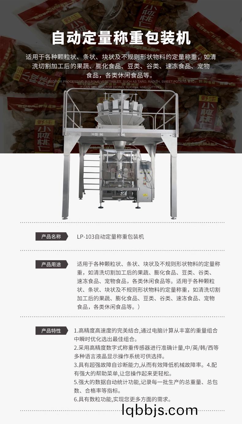 适用于各种颗粒状、条状、块状及不规则形状物料的定量称重,如清洗切割加工后的果蔬、膨化食品、豆类、谷类、速冻食品、宠物食品,各类休闲食品等。