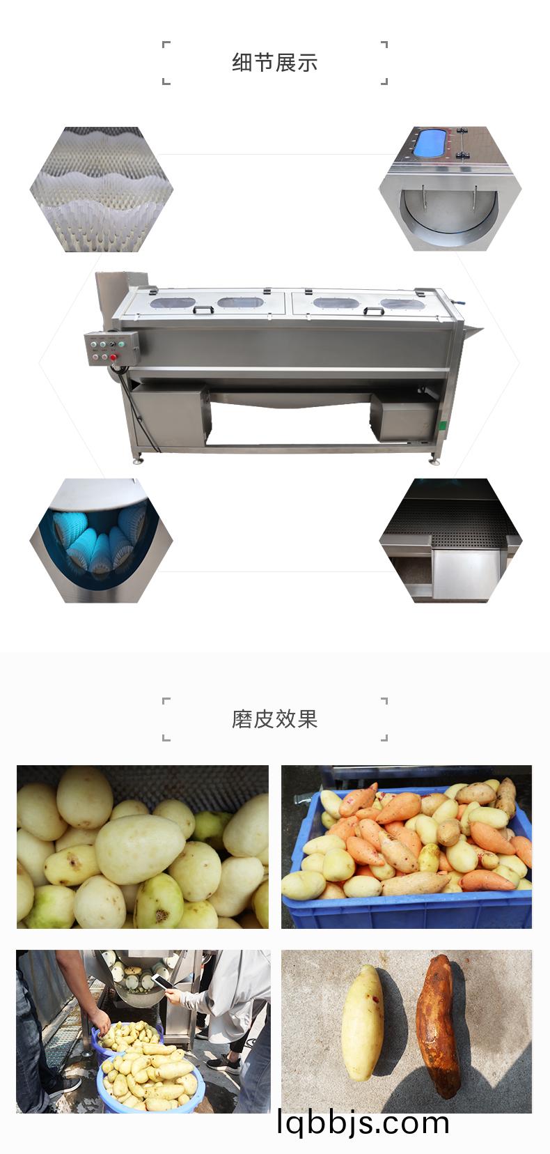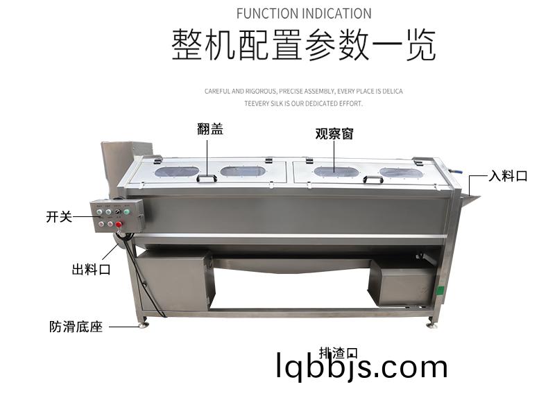 用途:适用于根茎类果蔬清洗加工流水线前段清洗设备,如土豆、生姜、西红柿等。用于食品加工厂、中央厨房、净菜配送中心、团餐等。特性:1.可以调节自主调节清洗速度,以应对不同食材和不同泥沙程度的物料。2.配合输送机实现自动进出料,达到流水作业,提高产能。